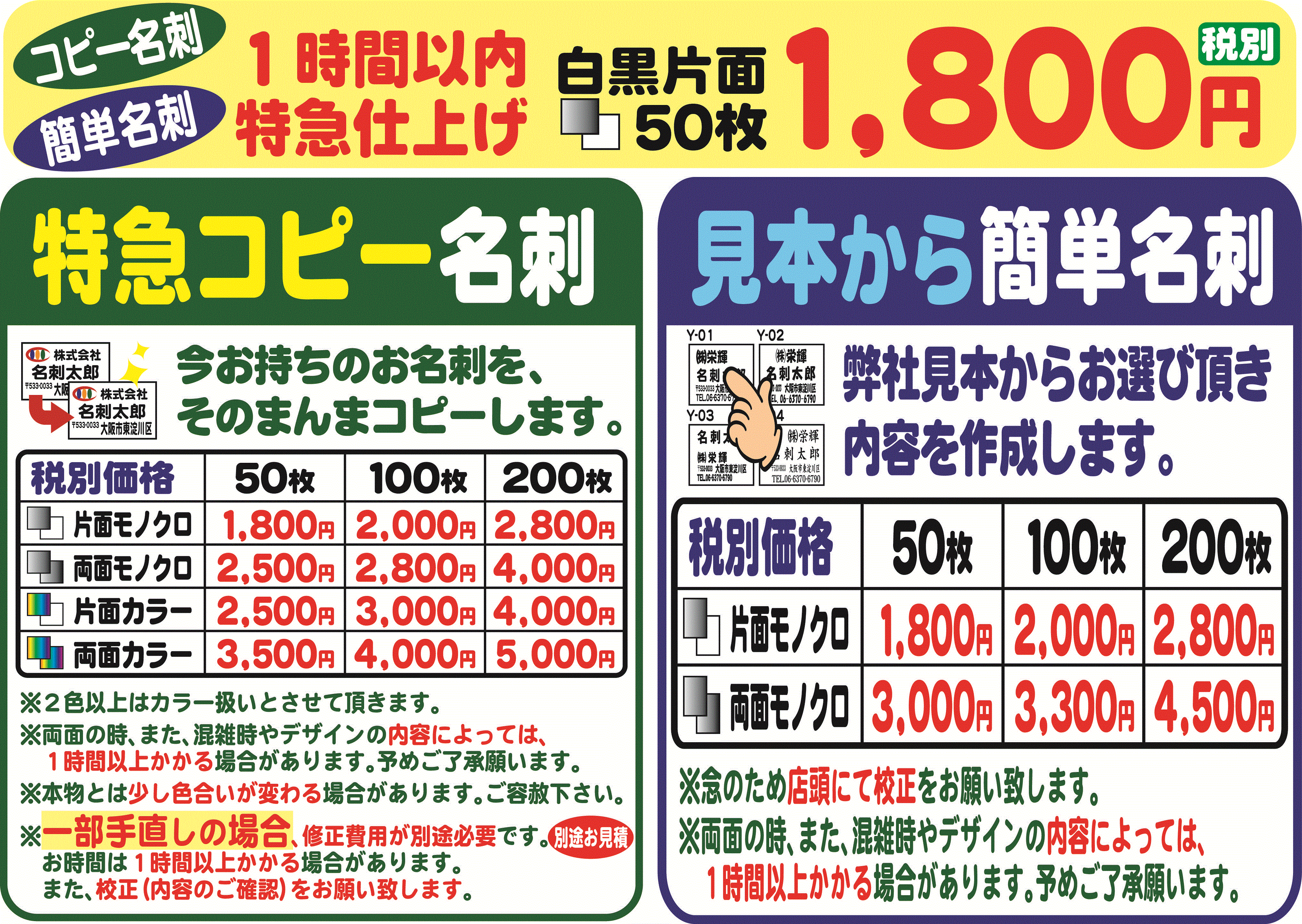 新大阪駅東口徒歩3分スピード名刺チラシ印刷エイキ